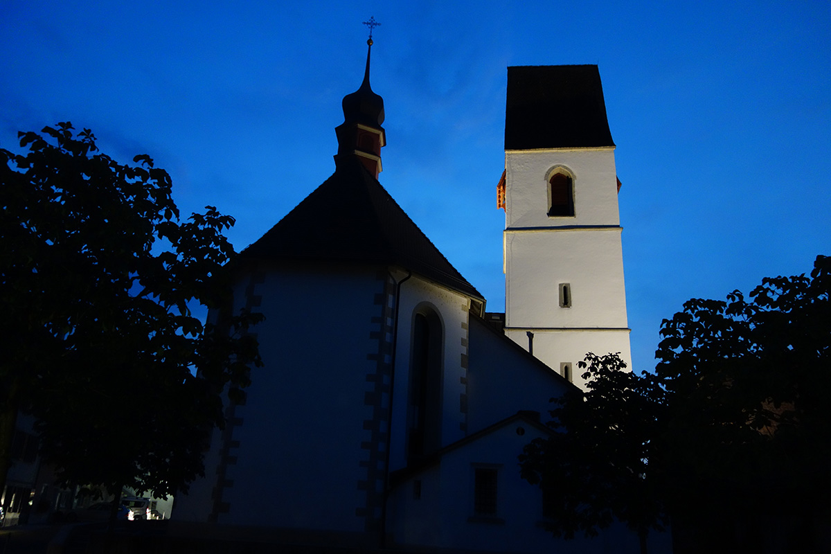 Kirchtürme sind in der Regel fest verbunden mit der Kirche und stehen in der Achse des Kirchenbaus. Bei der Stadtkirche Mellingen dagegen steht der Turm frei und liegt quer zum Kirchenschiff. Der Grund liegt darin, dass der Turm Teil einer älteren Kirche war, die damals von West nach Ost gerichtet war. Der Turm aus dem 13. oder 14. Jahrhundert war gleichzeitig der Chor der Vorgängerkirche. Das heutige frühbarocke Kirchenschiff von 1675 ist nord-südlich ausgerichtet. Mehr zur Mellinger Stadtkirche hier.